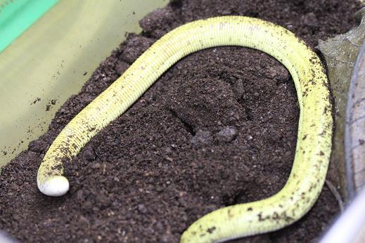 コオロギ爆食中!! 35センチぐらいです、クリーム色の強い個体です。